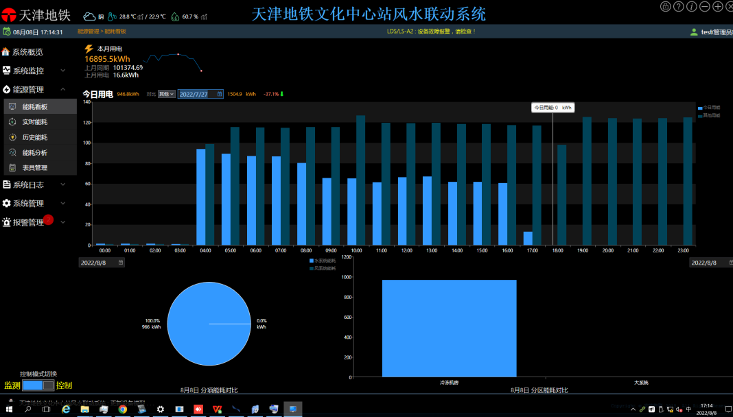 目前,风水联动系统已经在天津6号线文化中心站进行部署,该站是集文化、商业、休闲为一体的大型综合性轨道交通换乘站,客流量大、换乘通道多、客流分布不规律,传统的人工调节空调模式能耗高、灵活性差,更换为kaiyun开云电竞风水联动系统后,可根据站内客流量的变化,第一时间进行温度的调节,并根据同时段出行情况,进行客流预测,自动调节温度,在制冷季可为空调系统节约能耗35%以上。